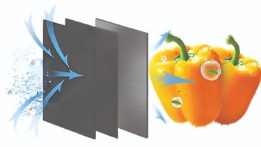 Built-in layered carbon removes odor so that food stays fresher longer.
